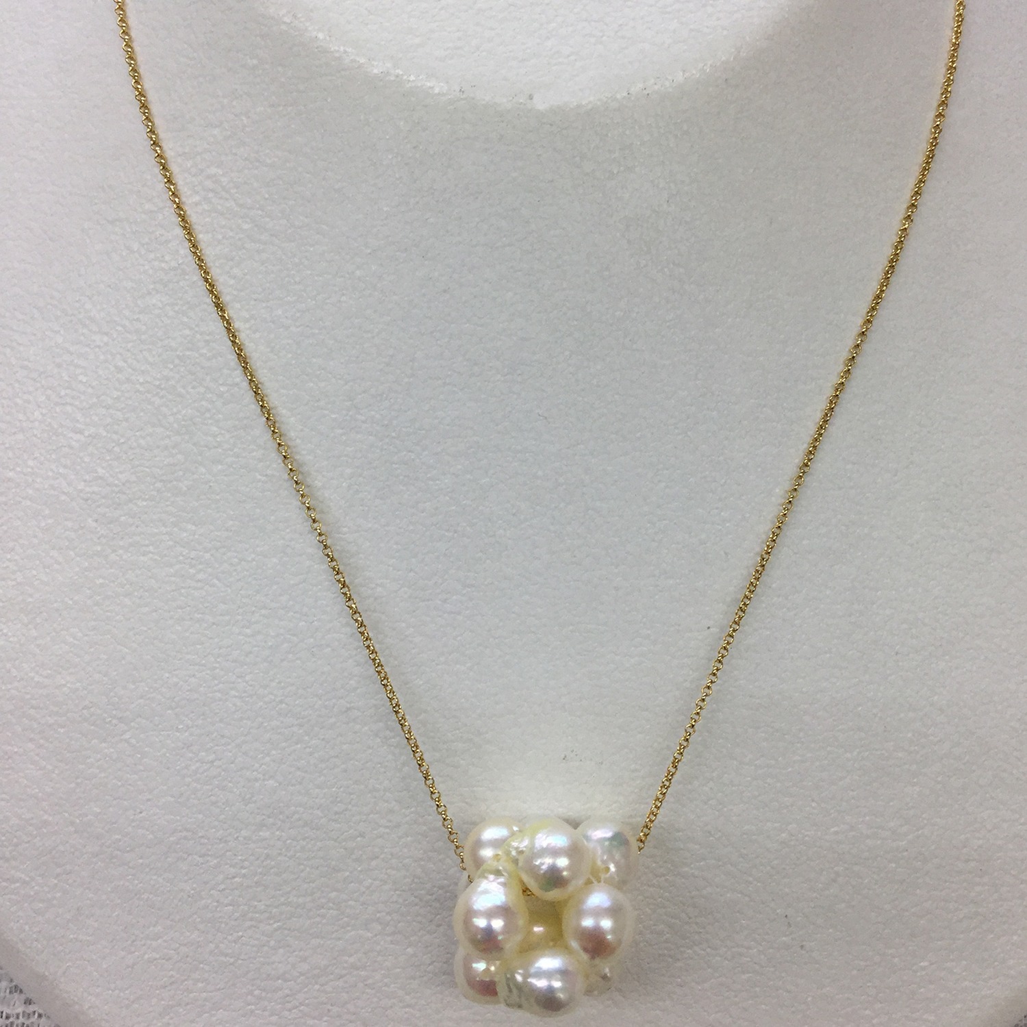真ん丸でないバロックパールで作る「編み込みボール」です