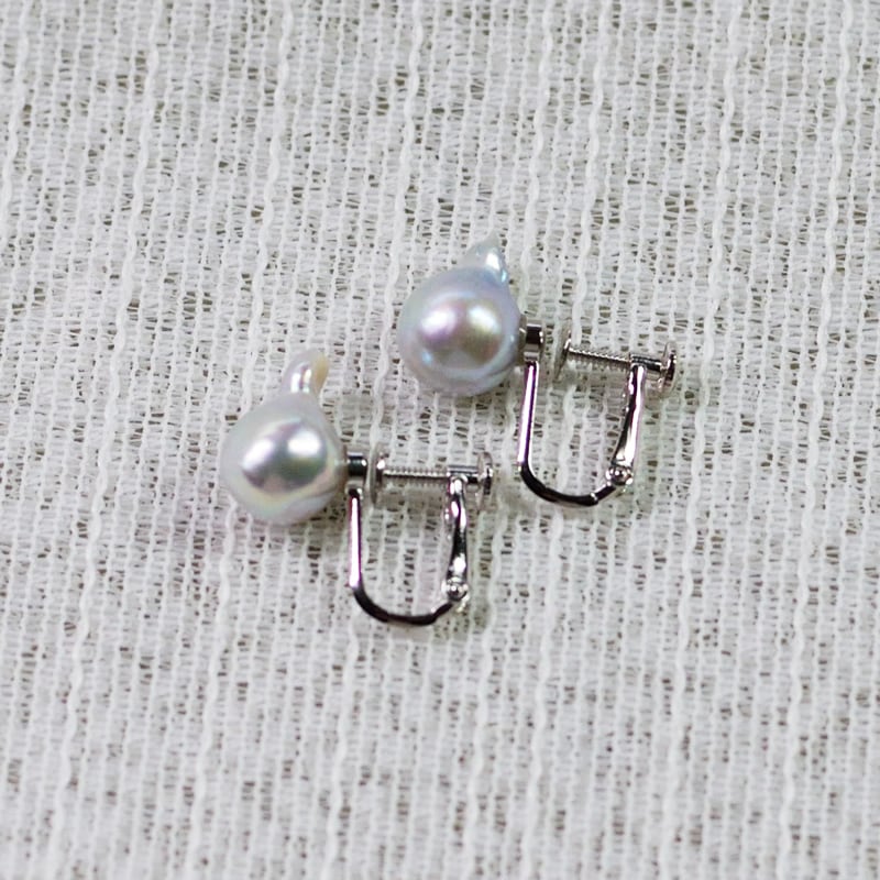 天使の羽イヤリング【ナチュラルブルー9㎜UP】【あこや真珠】E-1927B 若狭パール