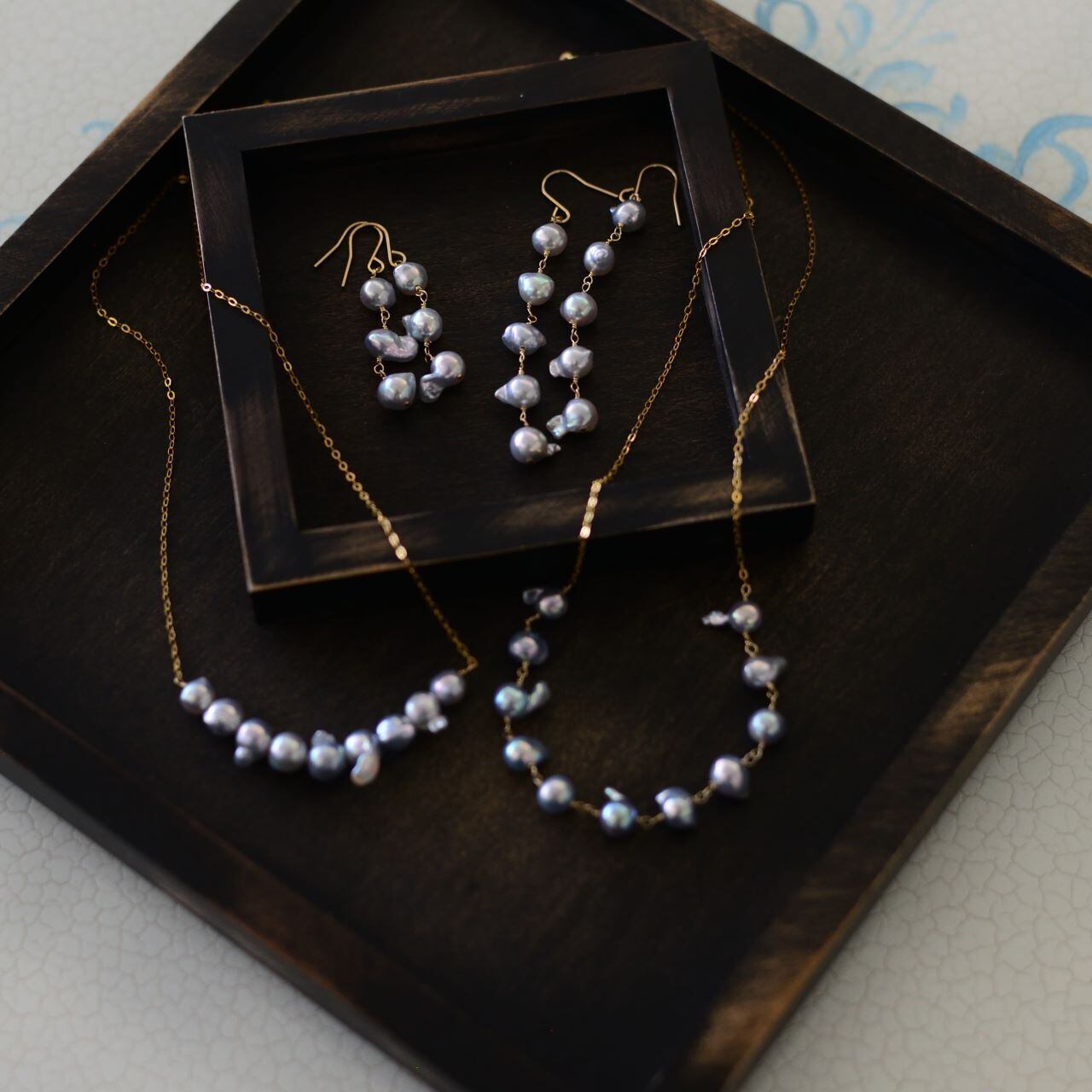 その鮮やかなブルーの真珠を厳選して作られたネックレスです。